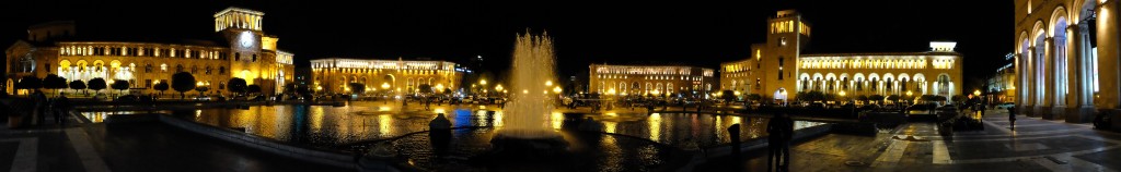 In plus e un contrast evident intre volumul si monumentalitatea cladirilor si societatea cam saracuta si prapadita care circula printre ele. Ca si cand ai avea niste bucati ceva mai bizare de New York parasutate in Asia Centrala. Este evident efectul sponsorizarilor masive (mai nou) de catre diaspora armeneasca euro-americana a spatiilor publice in Erevan, sau al altor locuri de importanta majora, identitara (ex Etchmiadzin). Asa se explica futurista colectie de arta monumentala in aer liber de la Cascade, absolut top class, sponsorizata de Cafesjian.