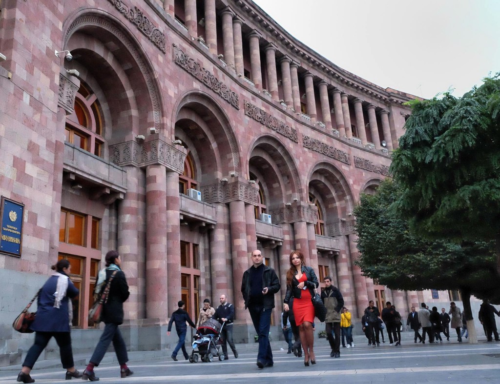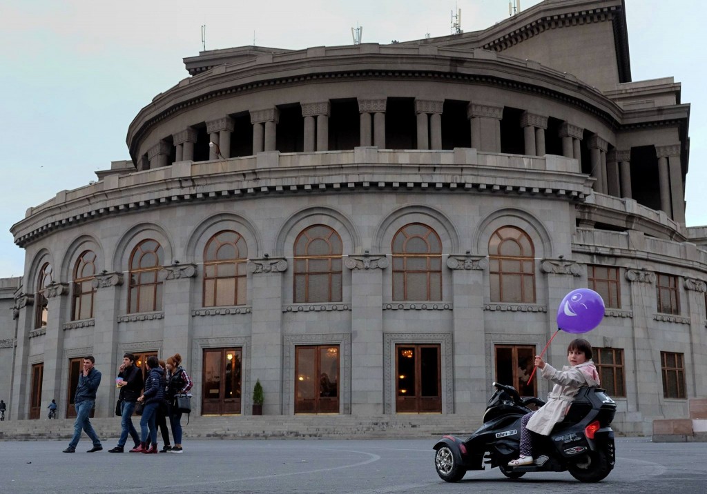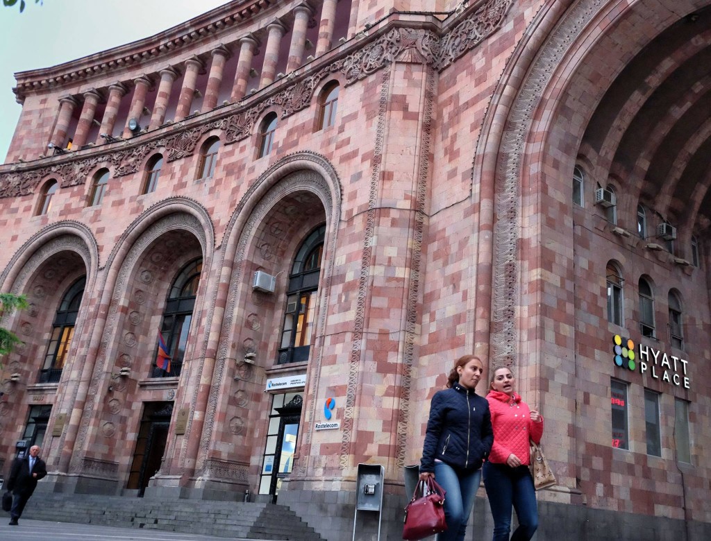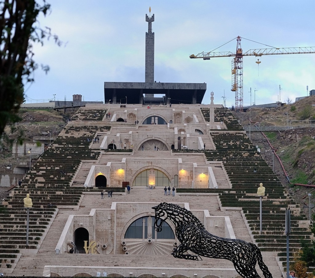 In plus e un contrast evident intre volumul si monumentalitatea cladirilor si societatea cam saracuta si prapadita care circula printre ele. Ca si cand ai avea niste bucati ceva mai bizare de New York parasutate in Asia Centrala. Este evident efectul sponsorizarilor masive (mai nou) de catre diaspora armeneasca euro-americana a spatiilor publice in Erevan, sau al altor locuri de importanta majora, identitara (ex Etchmiadzin). Asa se explica futurista colectie de arta monumentala in aer liber de la Cascade, absolut top class, sponsorizata de Cafesjian.