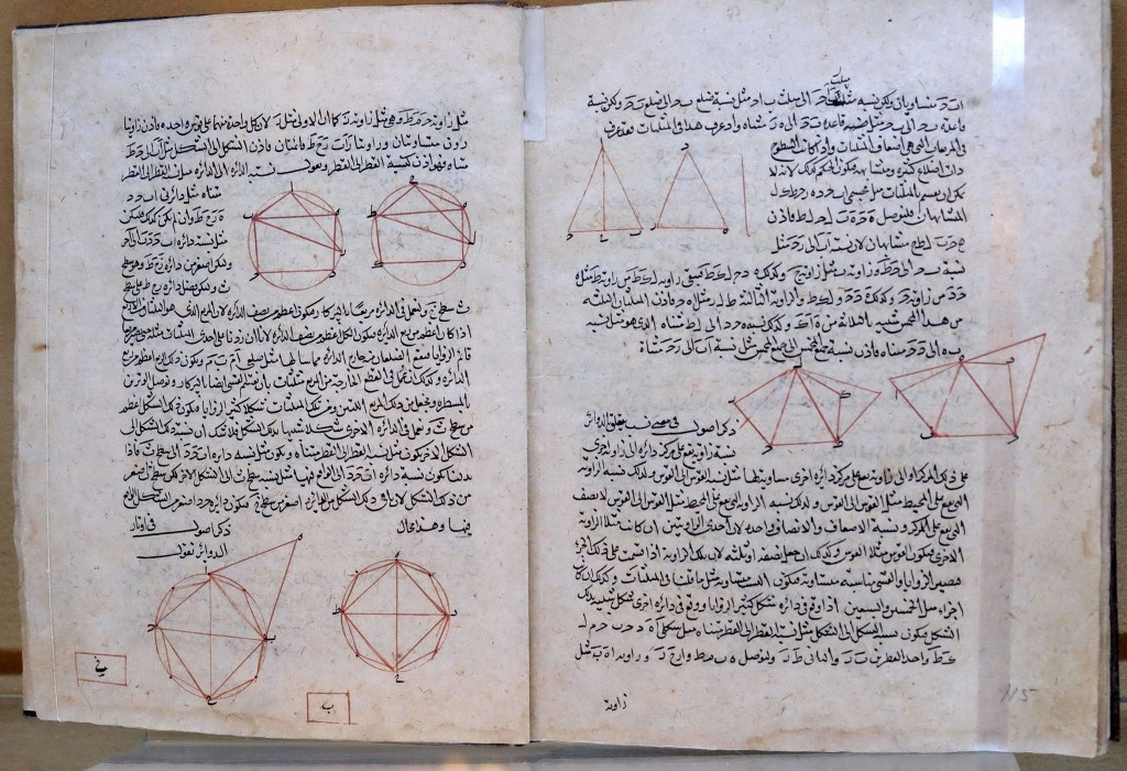 Daca vi se pare ceva cunoscut mai jos, foarte bine: e materia de geometrie de gimnaziu, intr-un manual al lui Ibn Sina de pe la 1200. Universitatea Oxford abia se infiintase iar arabii uite cu ce se ocupau. Abia dupa aia s-au lasat pe tanjala, dar stim cum e, toti am avut cate un coleg genial in clasele mici care ulterior s-a apucat de golanii si a disparut din peisaj. Asta e la Matenadaran, institutul manuscriselor vechi, poate cel mai interesant muzeu din Erevan.