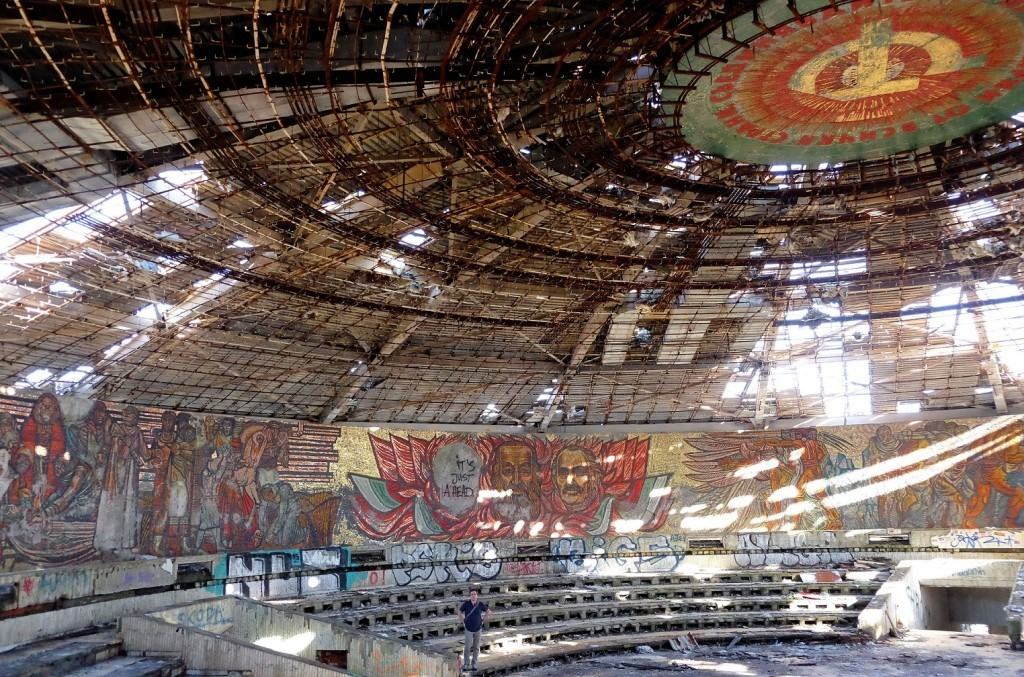Am găsit spărtura în uşă şi am intrat în marea sală în formă de OZN de pe vârful Buzludja (1440m), construită de partid în 1981, la împlinirea a 90 de ani de comunism bulgăresc. Şi, mai puţin trâmbiţat la vremea aia, 1300 ani de la formarea primului stat bulgar de către Han Asparuch, învingătorul Bizanţului.