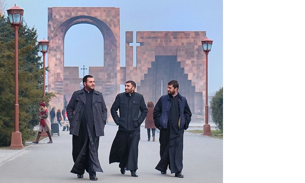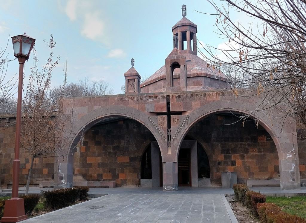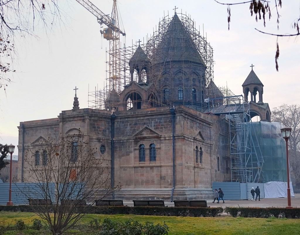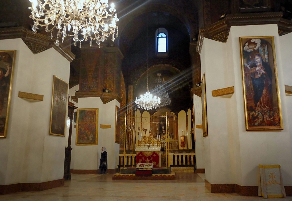 Nu e doar o biserica ci un mare complex religios, la Etchmiadzin, la 20 km de Erevan, prima capitala spirituala si politica a regatului medieval al Armeniei. Prima basilica cu cupola a fost ridicata aici chiar de Grigorie luminatorul, apostolul care i-a convertit pe armeni, anume in anii 301-303, deci locul a devenit de atunci capitala spirituala a neamului. Impresionanta vechime. Apoi catedrala a fost refacuta de-a lungul vremii si a capatat treptat forma actuala incepand de prin 480.