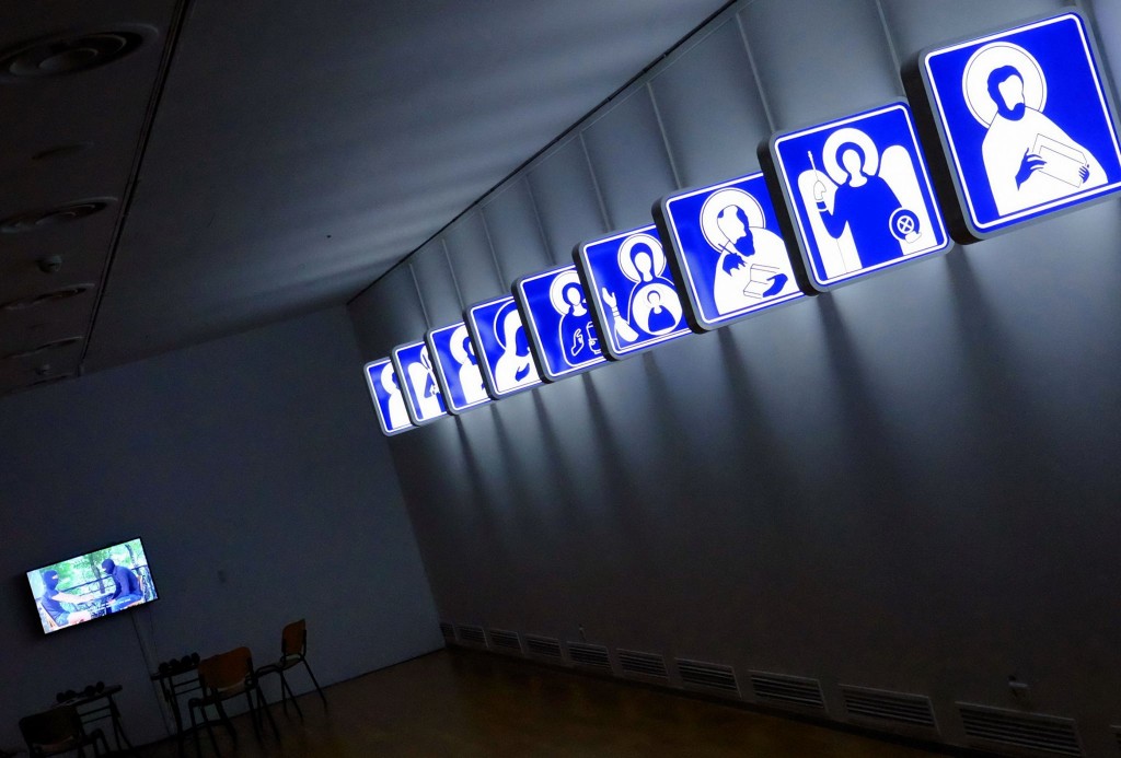 Cel mai patetic e un nene care de jumate de secol se lupta cu numarul de aur, producand planse si machete geometrice repetitive, din care spera sa faca la un moment dat mobilier urban. Aveam si noi unul la filozofie care ne teroriza cu pentadele, descoperirea vietii lui, un fel de dialectica hegeliana dar in 5 pasi, nu 3, care explica totul pe lume. Inteleg ca acest neo-obscurantism steril nu l-a impiedicat sa ramana mare in Academie pana azi. In colt au pus si un interviu cu artistul sa ruleze in bucla, iar omul se cazneste sa spuna niste chestii. Oprirea acestui video ar fi un castig pentru toata lumea, dar in primul rand pentru artist.