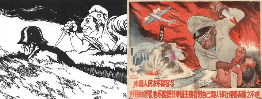 Si cum nici o chestie misto pilotata de Hitler nu putea fi neglijata de Stalin&comp, injunghiatul in spate a devenit acuza standard in agitprop de inspiratie sovietica. Revolutia era injunghiata pe la spate din toate pozitiile de dusmani externi, interni, burjui, culaci, diverse minoritati suspecte, medici evrei, lifte, tradatori. Si americani, fireste.