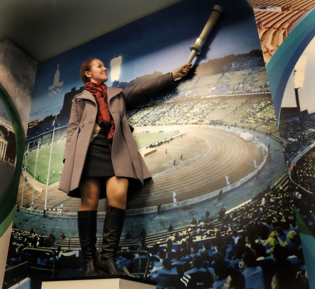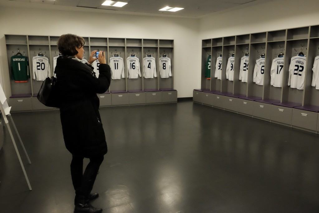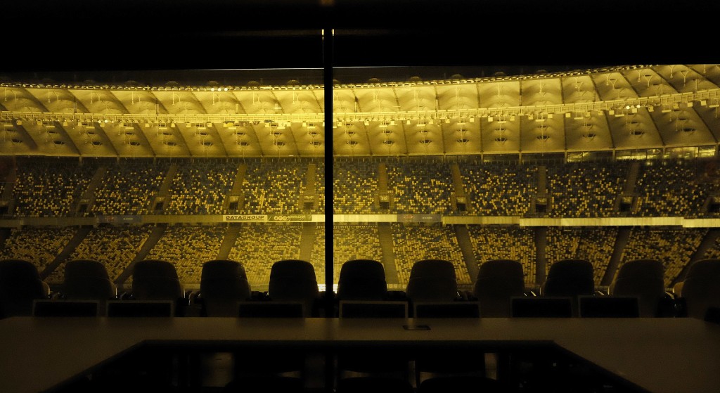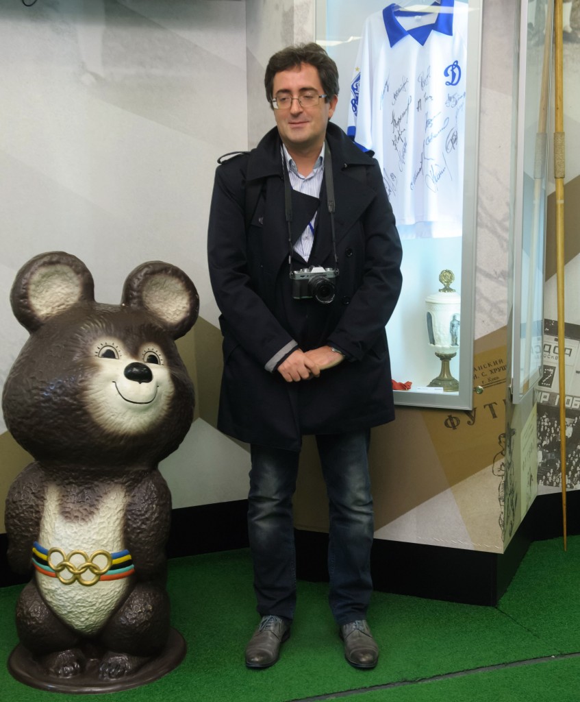 Inedit seminar de reformat Ucraina pe stadion, in loja oficiala: sediul lui Dinamo Kiev, unde s-au jucat meciurile Euro 2012. Ucrainienii sunt imens de mandri de constructie, se organizeaza si tururi ghidate al arenei Olimpiiski, dupa cum se vede. Aici putem gasi amintiri prafuite cu Miska, mascota olimpiadei sovietice ’80, deoarece o parte din competitie a fost si aici la Kiev, nu doar in Moscova. Brejnev inca traia, sau era doar proptit in geam, nu se stie. Iar vizualul era copiat din Leni Riefenstahl, ca aici se oprise imaginatia regimului. Separat, aripa cu sali mult mai moderna in care se stabilesc azi rezultatele meciurilor, toalete de avion, etc.